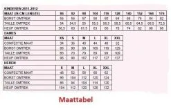 | Kindermaat | 98, 104, 116, 128, 140, 152, 164 |