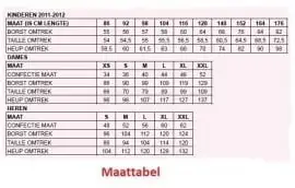 | Kindermaat | 116, 128, 140, 152, 164 |